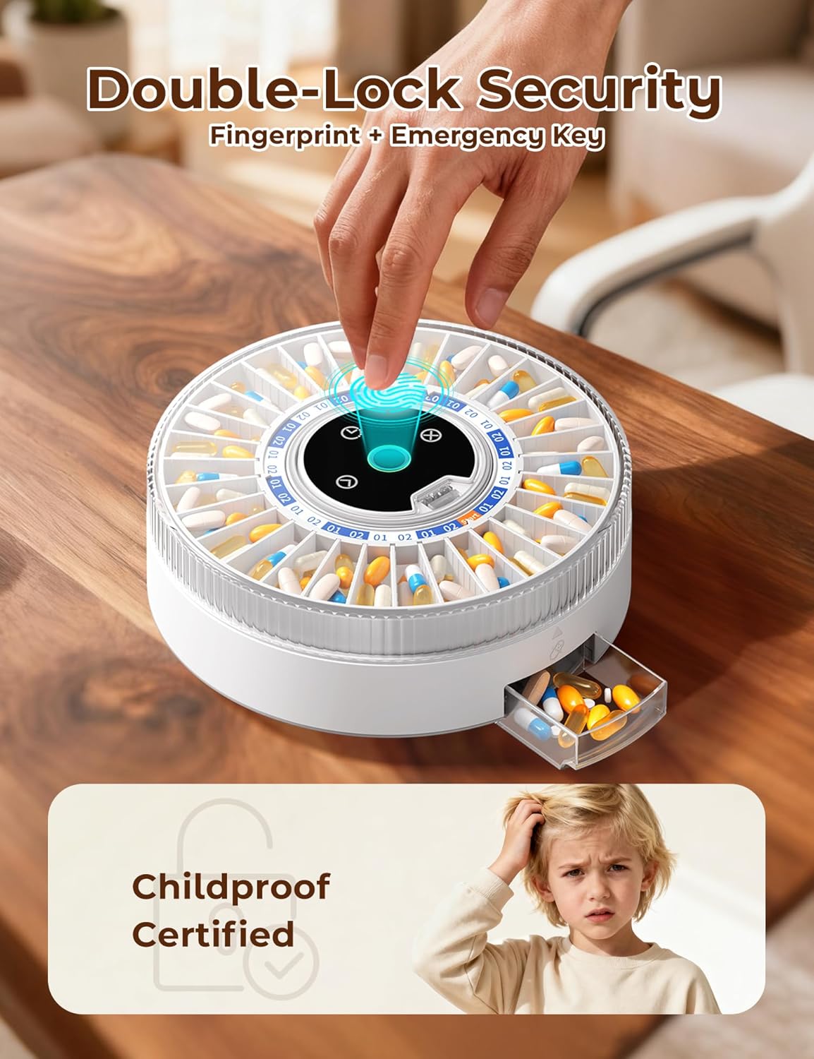 | Included Components | Automatic Pill Dispenser*1, Dose ring*6, Instruction book*1, Key*3, Quick guide*1 |